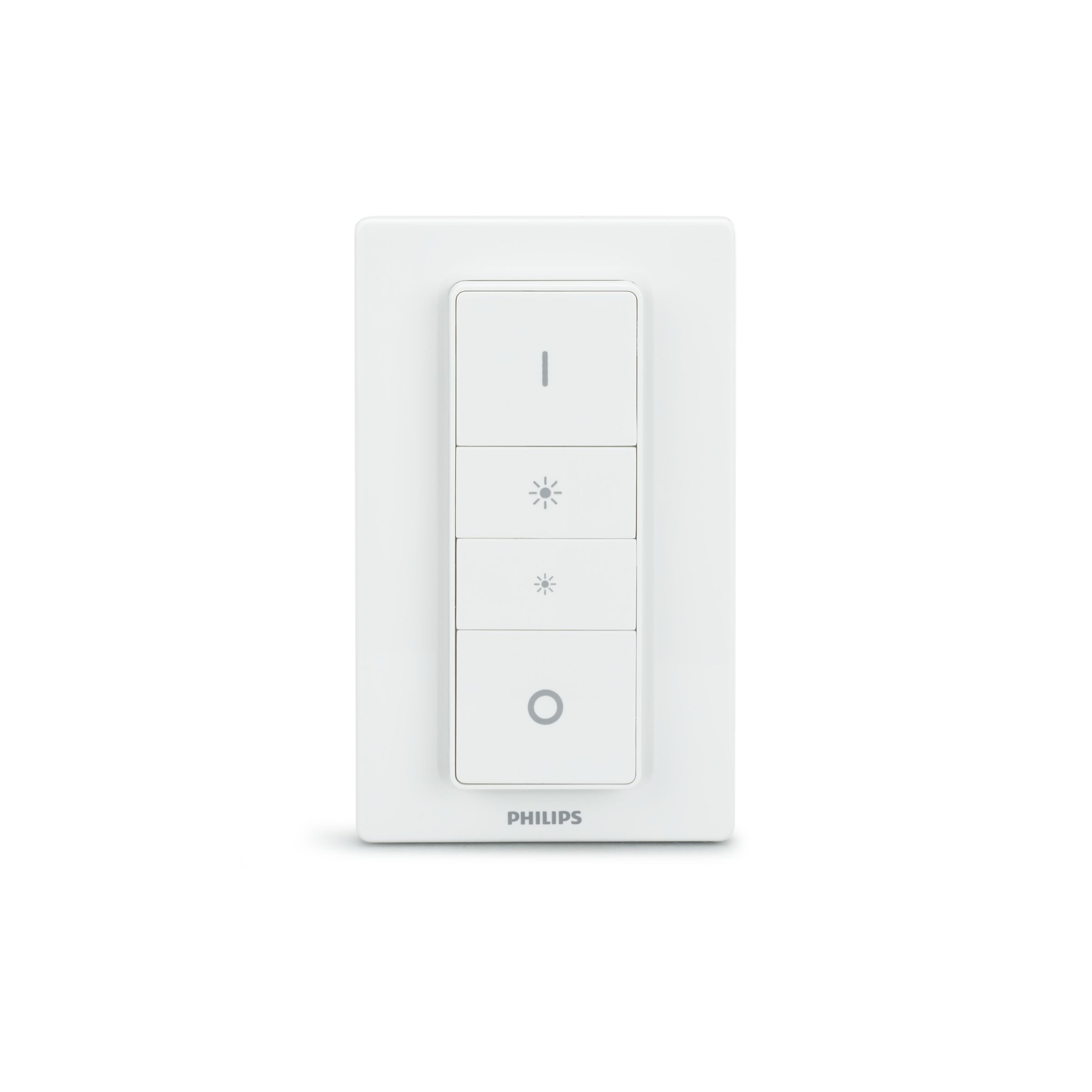 Enrich your system with the Philips Hue dimmer switch and enjoy smooth wireless dimming. The switch works as a normal wall switch and dimmer. Place it anywhere you want, using screws or the adhesive tape on the back plate of the switch.