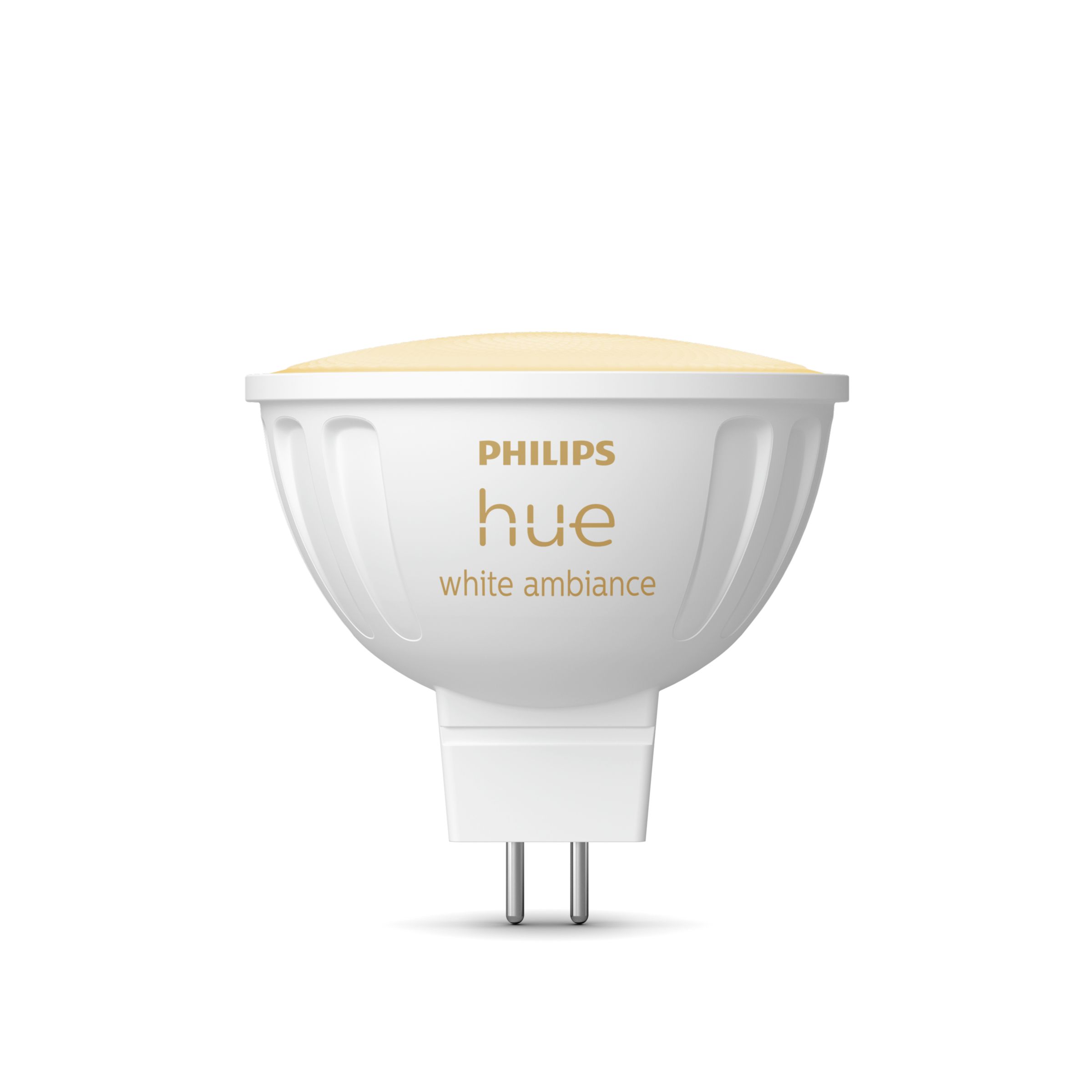 Upgrade your conventional spots with Hue MR16. Featuring a 12 V, bi-pin design suitable for most existing fittings, this MR16 bulb enables you to bring warm-to-cool white smart light to every corner of your home. Compatible with most transformers.¹
