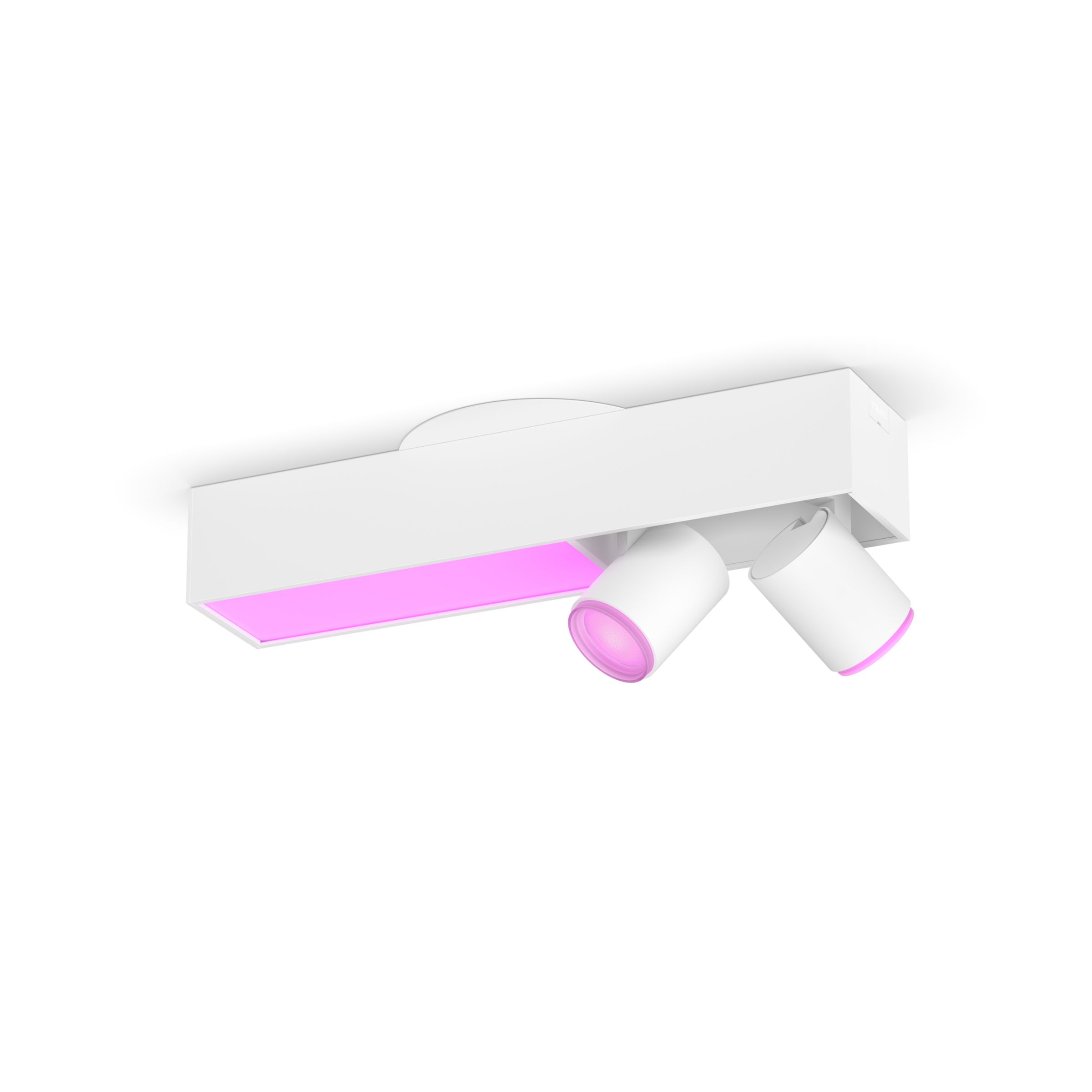 Get both functional and mood lighting in a single fixture. The white Centris has a fixed ceiling light and two spot lights that can be angled individually. Set each light in the fixture to any of millions of colors for a truly unique look.