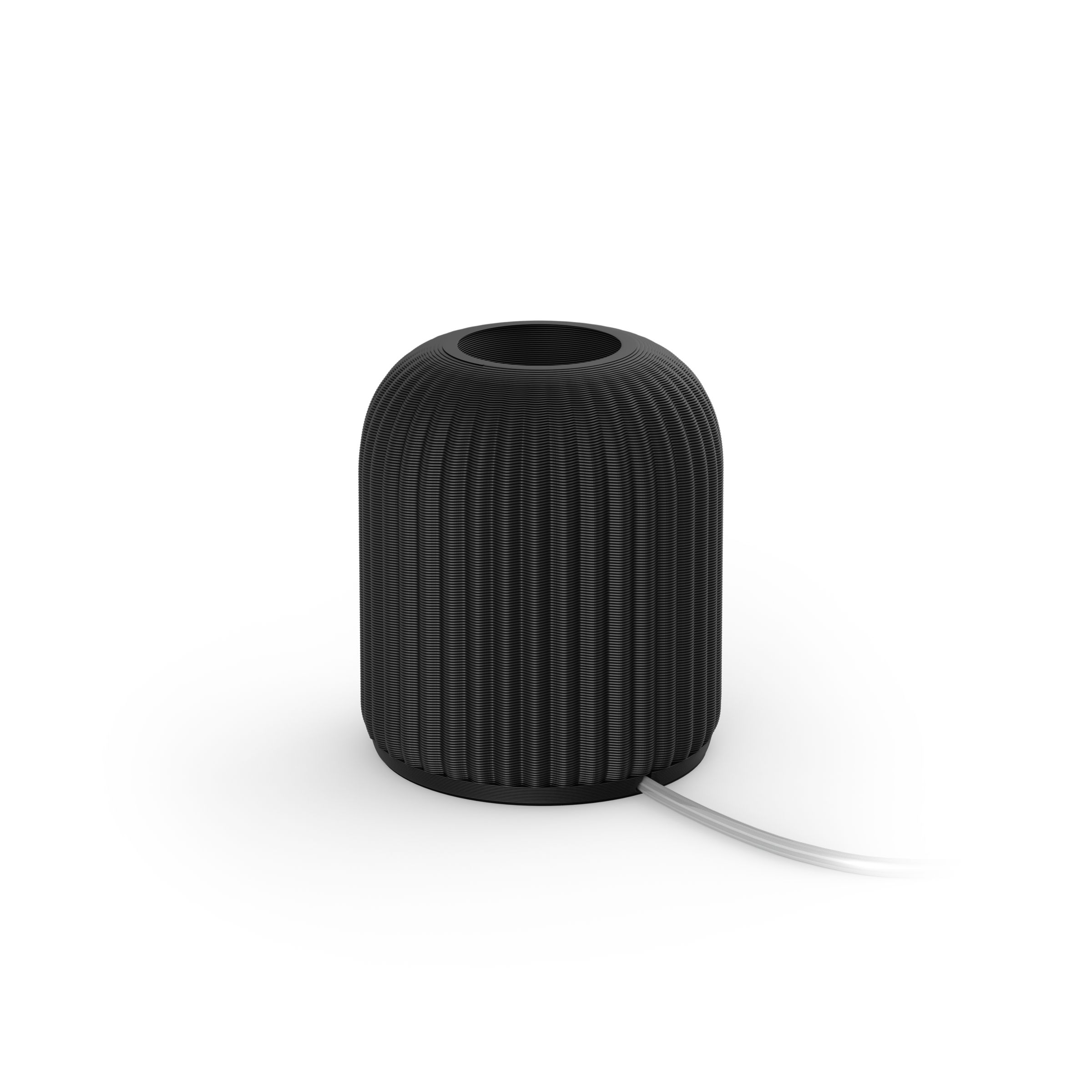 Specially made for Lightguide bulbs, this table lamp has been 3D-printed with a unique corrugated texture and glossy black finish.