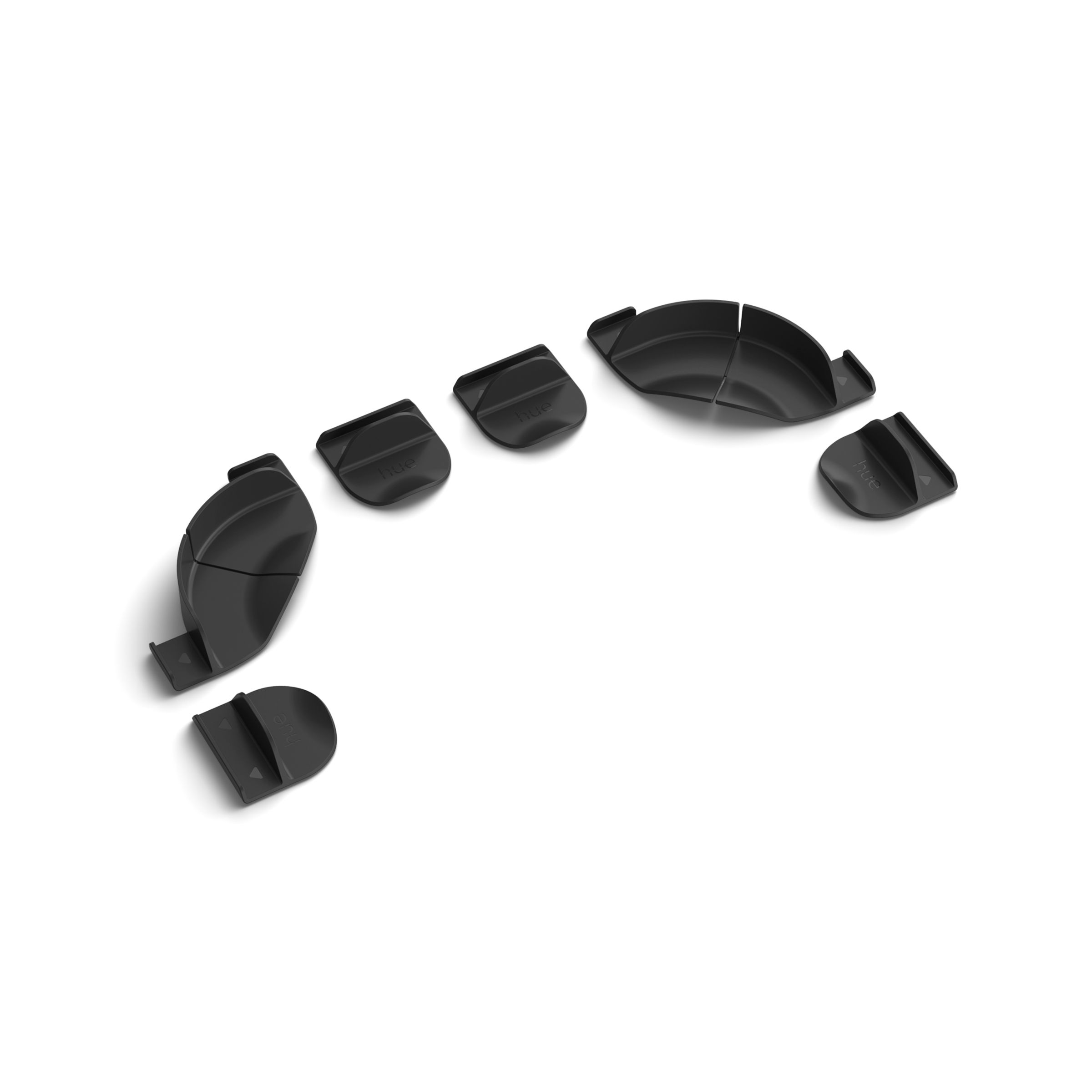 Attach a Play gradient lightstrip to the back of your PC monitor with ease using these black mounts with 3M adhesive backing.