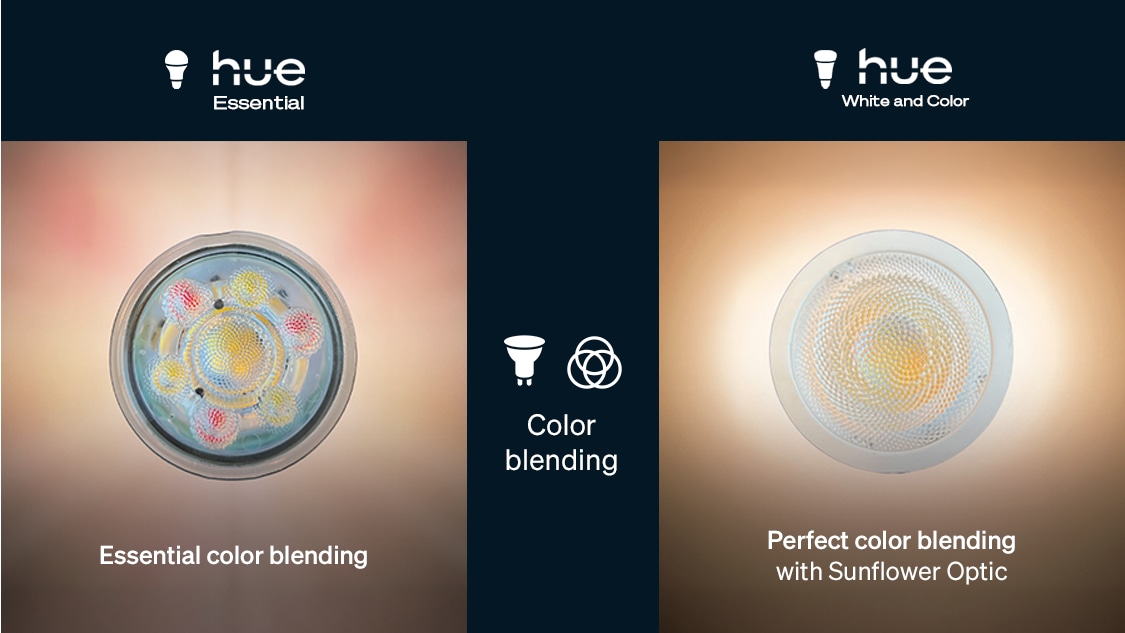 But if you want a best-in-class color-blending experience, you should try the Hue range. Featuring Sunflower Optic, the Hue GU10 bulb delivers perfect color blending for extremely smooth transitions. Each LED is designed to blend light seamlessly, producing uniform, saturated colors for the ultimate in immersive lighting.
