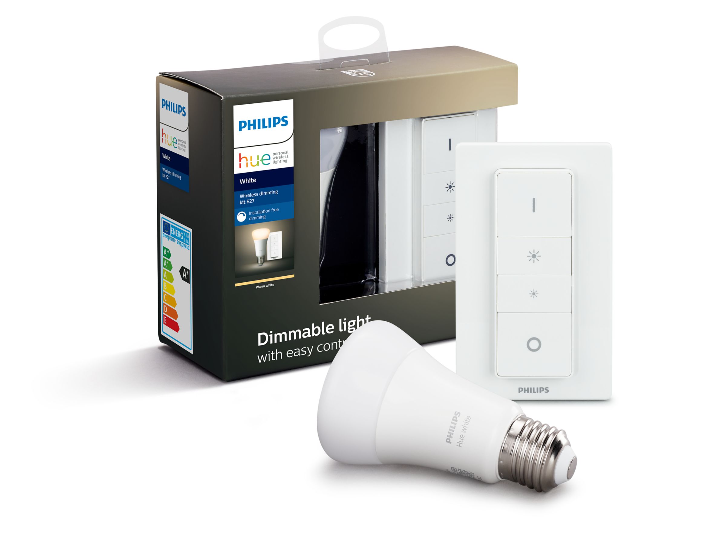 Comece com o kit de regulação de intensidade da luz sem fios Philips Hue e desfrute de uma regulação suave sem fios. Está pronto a utilizar. Controle a lâmpada com o interruptor de regulação da intensidade da luz incluído ou estabeleça ligação à Hue Bridge para desbloquear mais funcionalidades inteligentes.