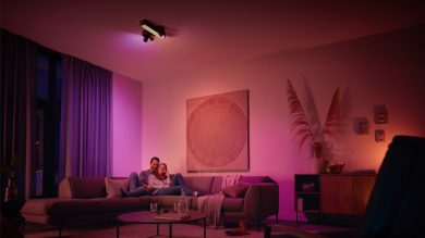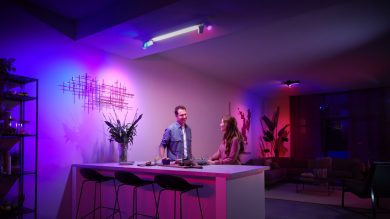 Fiecare lumină din instalația de iluminat – inclusiv lumina principală difuză – poate fi ajustată pe orice culoare, făcând mai ușoară transformarea oricărei încăperi.